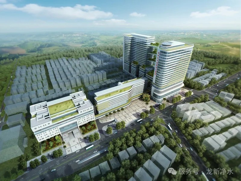 深圳市中西医结合医院是一所集医疗、科研、教学于一体的现代化三级甲等医院,二期改扩建项目总投资约25亿元,新增床位1100张,新建建筑面积21.4万平方米。此次集中分质供水系统项目,龙新净水根据医院不同科室的水质需求,采用二级反渗透技术结合后续处理工艺,将自来水深度处理为符合各科室标准的纯水,并通过专用不锈钢管道精准输送。系统设计充分融入医院信息化管理要求,为未来智能化运营奠定基础,同时助力医院绿色建筑评定,实现节水节电、减少设备占地等多重效益。